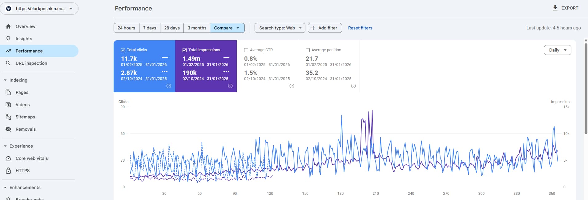• Website clicks (Google Search Console) increased 275% to 11,184 total clicks.